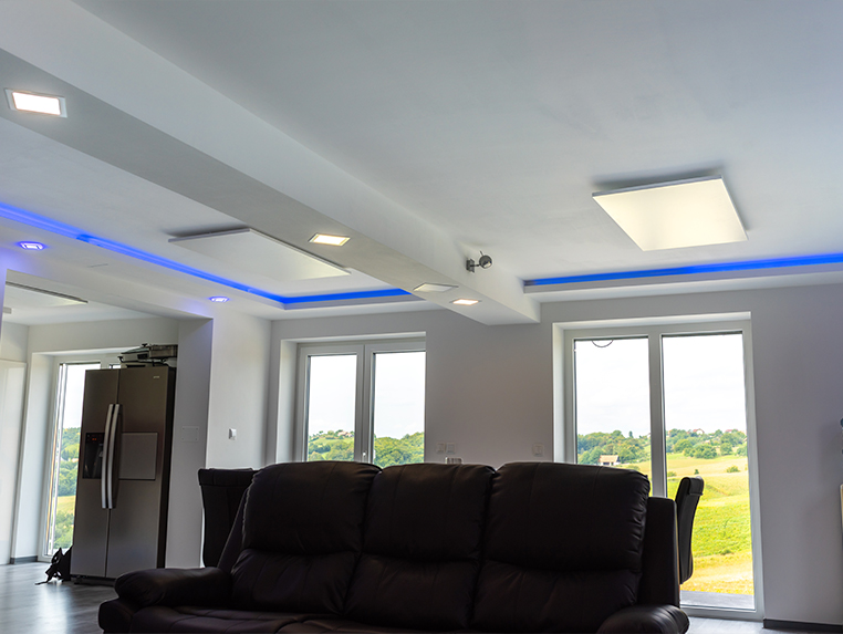IR paneli se uglavnom postavljaju na strop, jer se tako toplinsko zračenje najravnomjernije raspršuje po prostoriji, baš kao i svjetlost stropne svjetiljke.